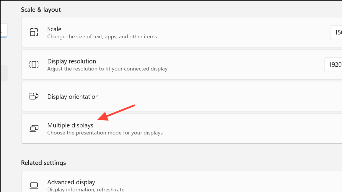Step 2: Scroll down to the Multiple displays section. You’ll see a list of all detected screens, each represented by a number.