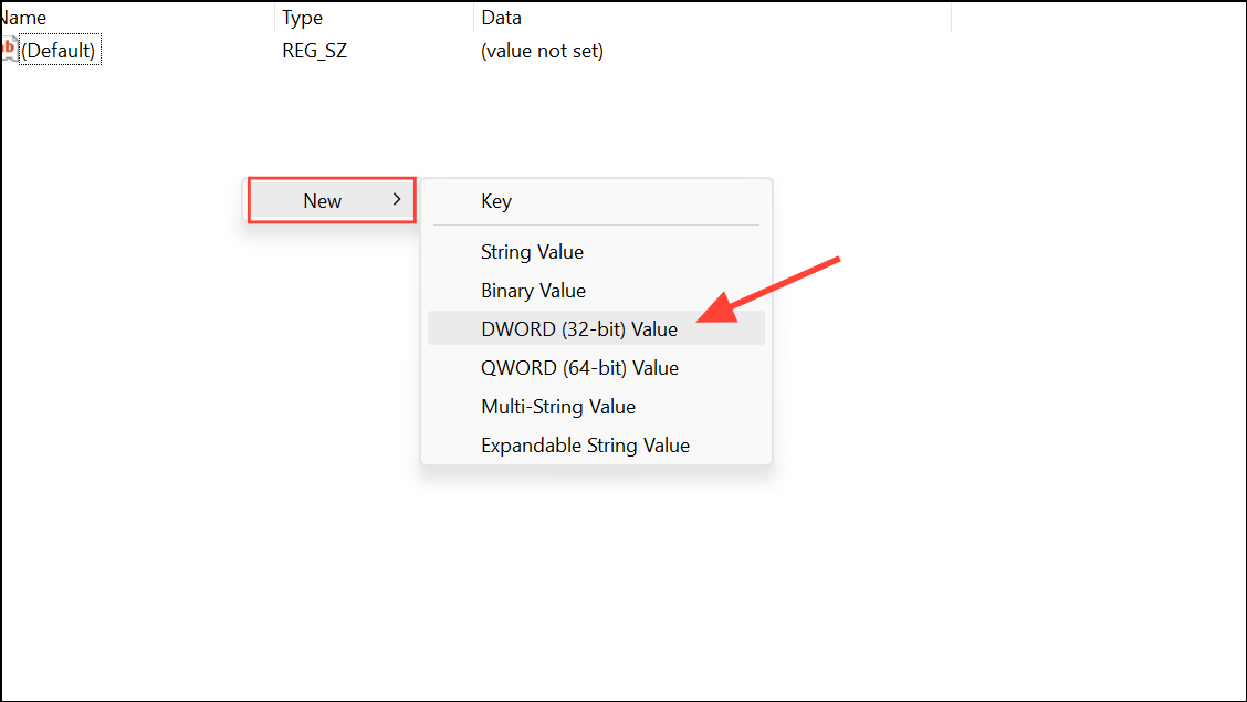 Step 3: Right-click the Explorer key, choose New > DWORD (32-bit) Value, and name it NoControlPanel.