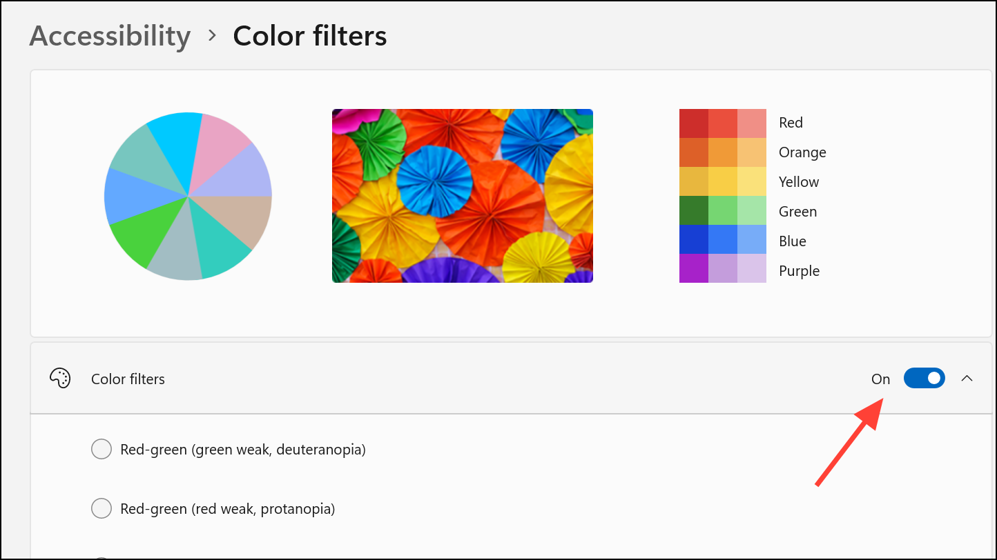Step 5: Once satisfied with the selected filter, simply close the settings window. The color filter remains active across all apps and system elements, applying system-wide changes to improve color separation everywhere except for screenshots and screen sharing (which remain unaffected).