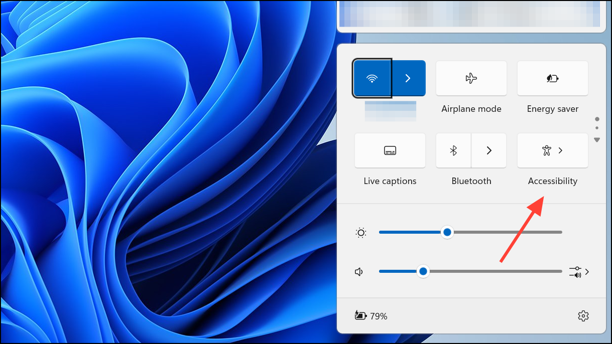 Step 2: Click the Accessibility button in the quick settings panel.
