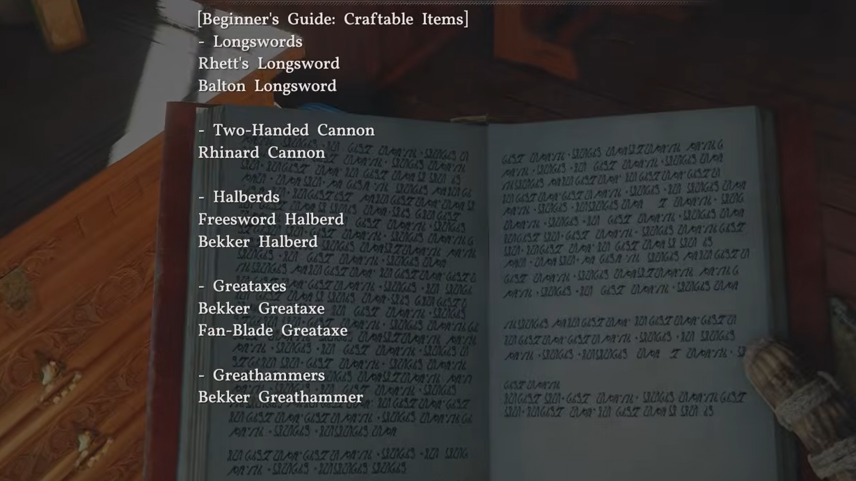 Reading Two-Handed Weapons of the World, Vol. 1 unlocks recipes for several two-handed weapons. The most notable is the Rhinard Cannon, a hand cannon that delivers area-of-effect damage and works well for crowd control. You can craft the Rhinard Cannon at a blacksmith using 3 Copper Ore and 7 Iron Ore.