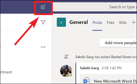 To have private 1:1 or group chats with your organization members, click on the ‘New Chat’ icon to the left of the Command Bar. The New Chat icon can be accessed no matter where you are in Microsoft Teams, i.e. you don’t have to go to the ‘Chat’ tab to start a new chat.