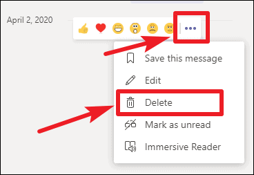 You can also delete messages already sent in private chats as well as a channel in Teams. To delete a message, hover on it. A string of emojis will appear. Click on the ‘More’ option (three dots) at the end and select ‘Delete’ from the pop-up menu. This will delete the message from the recipient’s end too.