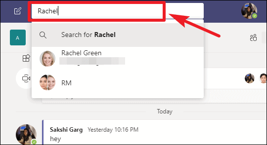 - Find or Start a Chat from the Command Bar: Type the name of the person in the command bar with whom you want to chat. Their name and any group chats you both are a part of will appear. Click on their name to go to your 1:1 chat with them; if you have never had a 1:1 chat with them before, it will start a new chat. Or, select the group to resume chatting there.