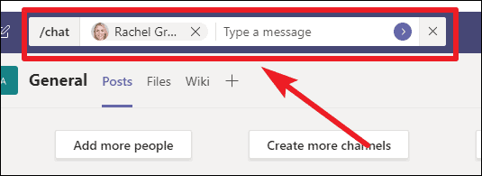 /chatin the command bar, follow it up with a space, then enter the person’s name and finally the message you want to send them.