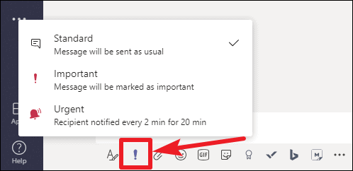 In Private chats, you can set delivery options for important messages. Click on the ‘Set Delivery Options’ button (‘!’ symbol) underneath the message box and select from the options available. By default, the delivery option for all messages is ‘Standard’. But they can be changed to ‘Important’ and ‘Urgent’ as per your needs.