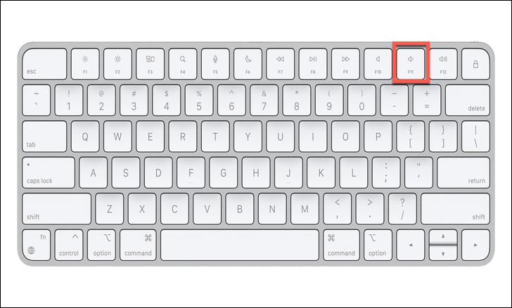 The speaker with just one wave in front of it automatically tells you that this button performs the volume down function. You can use the F11 button to reduce the volume of your macOS device to your desired level.