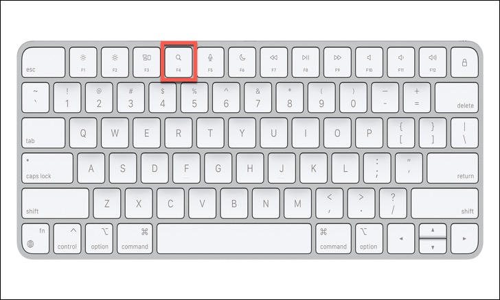 The F4 key has a very minimal magnifying glass as its symbol. A simple press of this button launches the Spotlight search feature. If you are someone who doesn’t use this feature, you should try it right away! This feature helps in saving a lot of time. It is a system-wide search feature for your macOS device that lets you search using a keyword and you can find all files and documents with it. You also get search suggestions in case there are no matching files on your system.