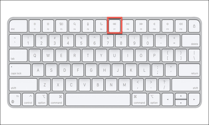 The F7 key with two triangles pointing backward helps you to rewind or play the previous track/video. If you want to rewind/ play the video or song from the beginning then a single press is enough. However, if you want to play the previous track/video, then you need to double press the F7 button.