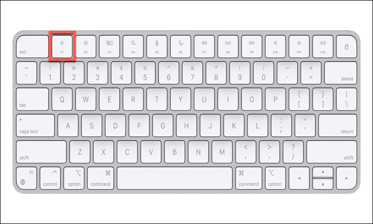 The circular, sun-like symbol on the F1 key helps you decrease your screen brightness. This feature is especially useful when you are working in the dark and need to lower the screen brightness to make it comfortable for your eyes. This button saves you the trouble of navigating to the control center and adjusting the display slider to decrease screen brightness.