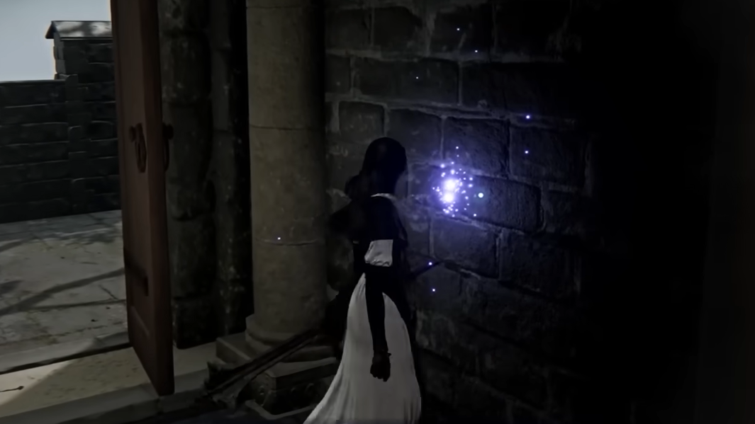 Step 4: In the chapel, interact with the purple orb on the wall behind where the Iron Menial stood. Smash it, then examine the wall as prompted to perform the “lick the wall” interaction that pushes the memory forward.