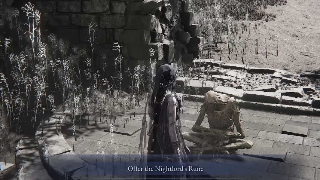 Step 1: During the post-Nightlord ending sequence, walk to the withered corpse in the keep that you normally interact with to end the game. Do not activate it yet.
