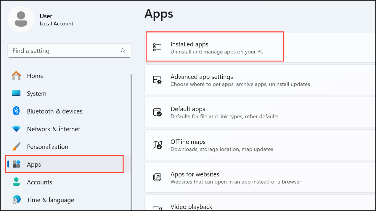 Step 2: Navigate to "Apps," then click on "Installed apps."