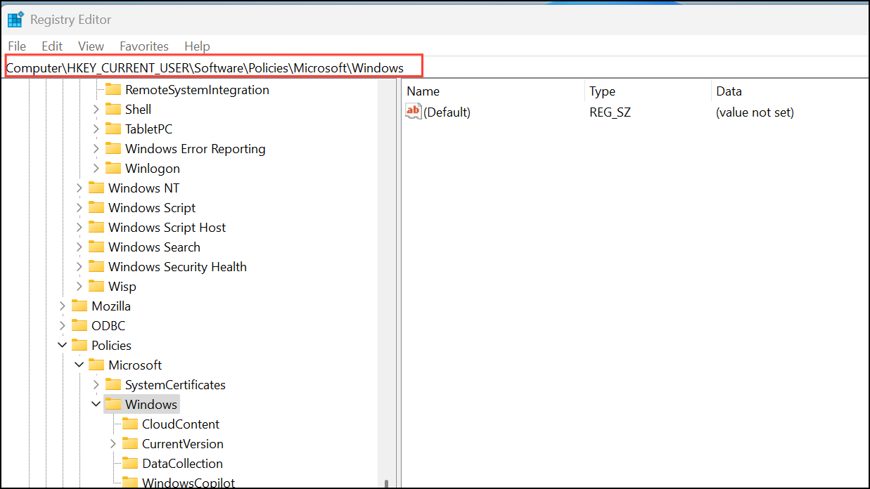 HKEY_CURRENT_USER\Software\Policies\Microsoft\Windows
