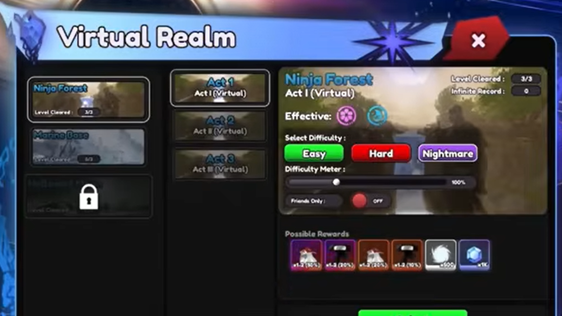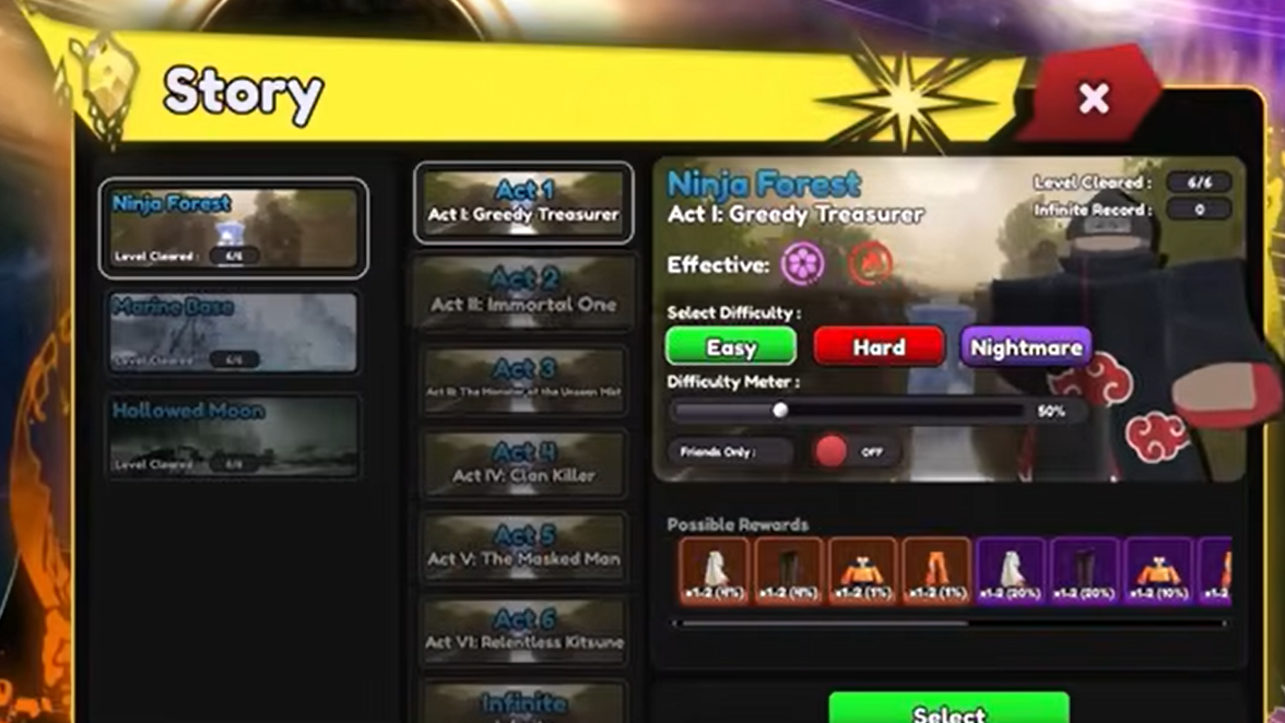 Step 1: From the lobby, enter Story mode and select Ninja Forest. Set the difficulty to easy and keep the modulation low if you are still building your roster.