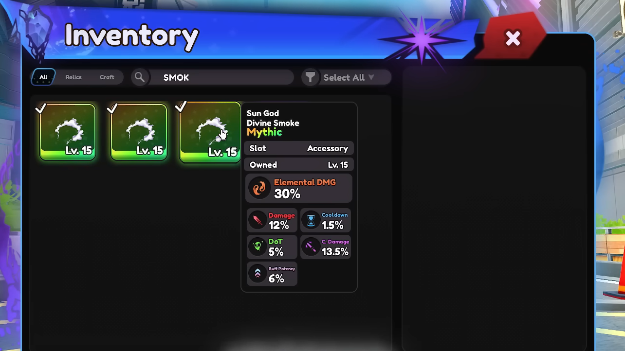Main stats are the headline perk on a relic. Only one can exist per item, and it grows the most when you level the relic. Body pieces can roll main stats such as damage, crit damage, hyper armor damage, or damage over time. Legs can push pure damage, seconds per attack (SPA), range, crit rate, crit damage, DoT, buff potency, or effect resistance. Heads often lean into buff potency or elemental damage, but can also roll SPA, range, crit stats, DoT, buff potency, or resistance.