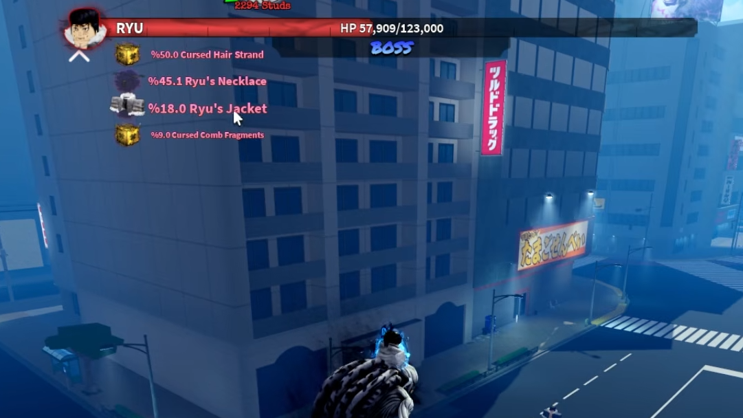 Step 1: Farm the Ryu World Boss at South-East Shibuya until you have 25 Cursed Hair Strands and 10 Cursed Comb Fragments. Bring friends or a strong build — the boss hits hard, and faster kills mean more attempts per session.