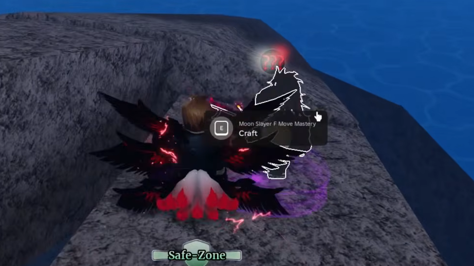The F move is Moon Slayer's most powerful ability and grants an additional +30% damage buff to the entire fighting style once unlocked. To access it, you need to find the Moon Slayer F Move Mastery NPC on Boss Island. Climb to the top of the hand statue on the white side of the boss arena — the NPC sits on the right side of the structure, near the King of Heroes seller NPC.