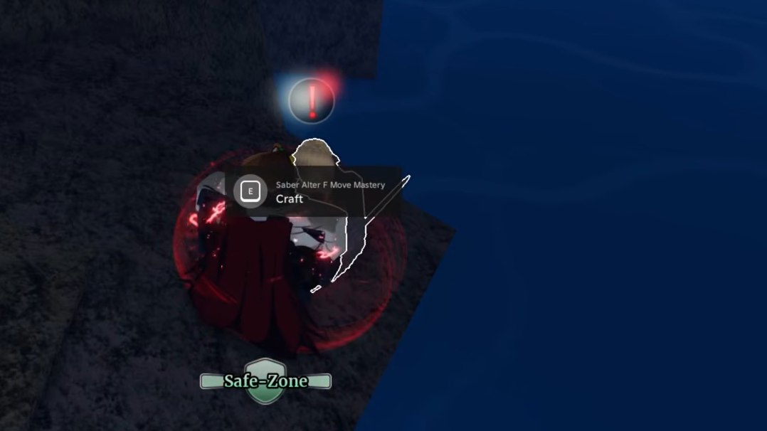 The F Move is Saber Alter's ultimate ability and requires a separate set of materials plus a specific clan. After obtaining the base Saber Alter weapon, travel to Boss Island and find the second Saber Alter NPC on the left-hand side of the island, standing at the very edge.