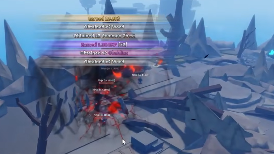 The Strongest Shinobi boss (referred to as "Moa" in-game) spawns on Ninja Island roughly every 5 minutes and 45 seconds. It has 2,000,000,000 HP, making it a true endgame encounter. A chat notification appears when the boss is active, and a floating timer marks its spawn point on the opposite end of the island from the teleport arrival spot.