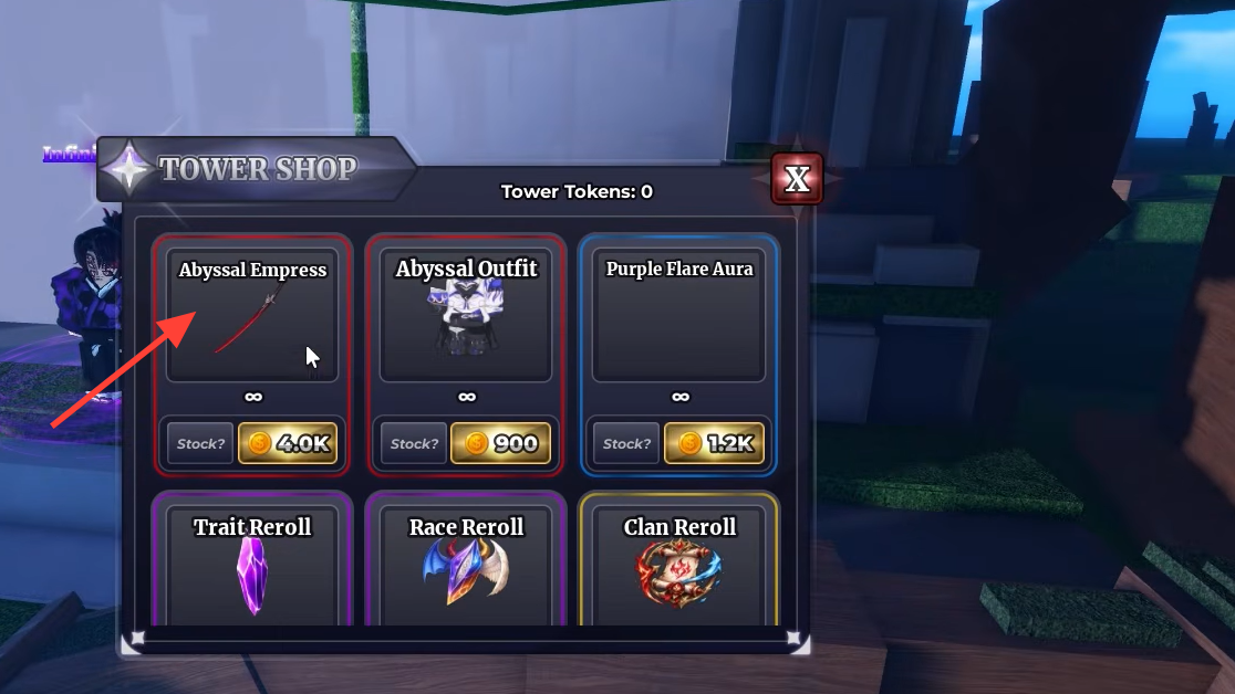 Buying the Abyssal Empress from the Tower Shop
