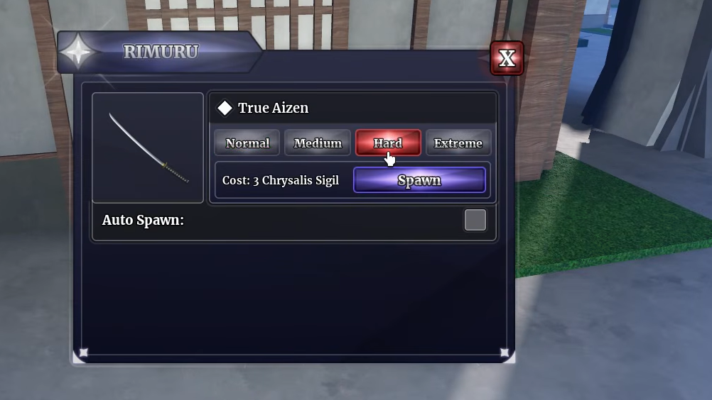 To spawn the boss, speak with the True Aizen Summoner NPC on Soul Society. Each Hard-mode spawn costs 3 Chrysalis Sigils, while Extreme costs 4. At 15 required kills on Hard, you'll burn through 45 Chrysalis Sigils just for this quest alone. On Hard difficulty, the boss has roughly 7.5 billion HP, so bring a friend or make sure your build can chunk through that health pool efficiently.