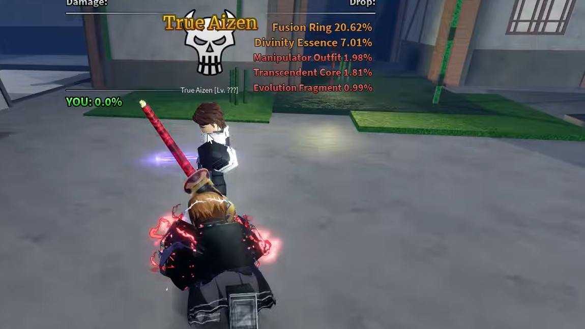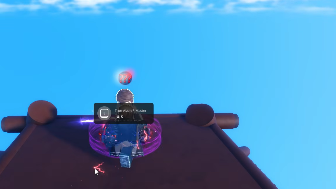You need two things before the True Aizen F Master will even talk to you. First, Soul Society must be unlocked. That means finishing the Hogyoku Quest, which sends you to collect six Hogyoku Fragments scattered across the map (you must be at least level 8,500). Second, you need to already own the True Aizen sword itself, purchased from the True Aizen NPC on Soul Society.