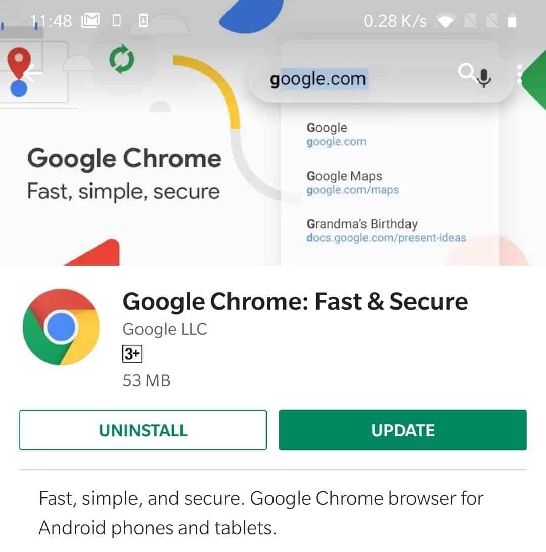 - Updating Chrome on Android