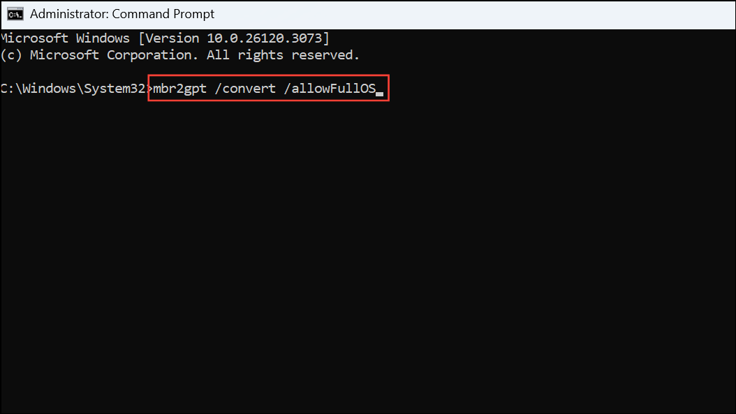 This command converts your system disk from MBR to GPT. Wait for the process to finish.