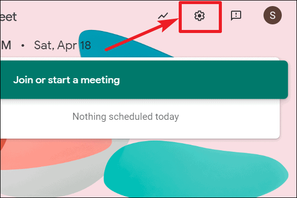 Step 1: Navigate to meet.google.com. Click on the 'Settings' icon located in the upper-right corner.