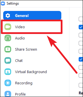 Step 2: In the settings pop-up, select the 'Video' tab to access video settings.