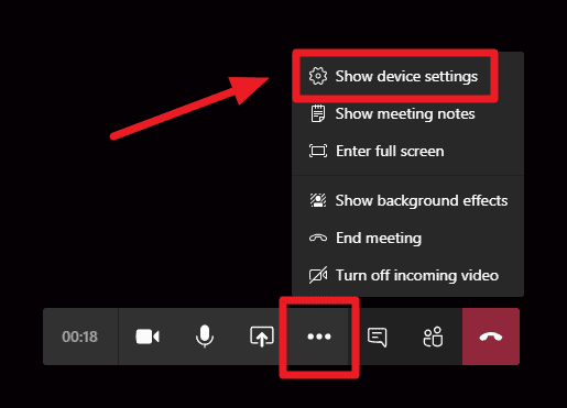 Step 4: Click the 'More options' icon (three dots) during the call and select 'Show Device Settings'.