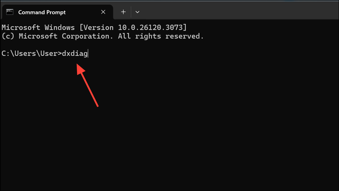 Step 3: Alternatively, open Command Prompt or Windows PowerShell. Type dxdiag and press Enter to launch the diagnostic tool.