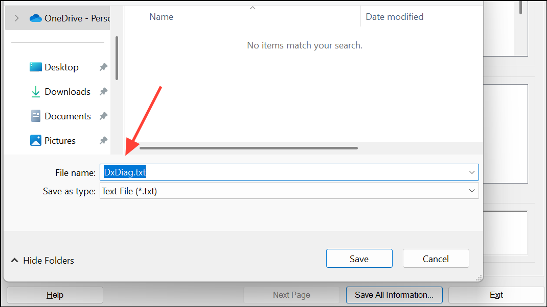 Saving and Sharing DxDiag Reports