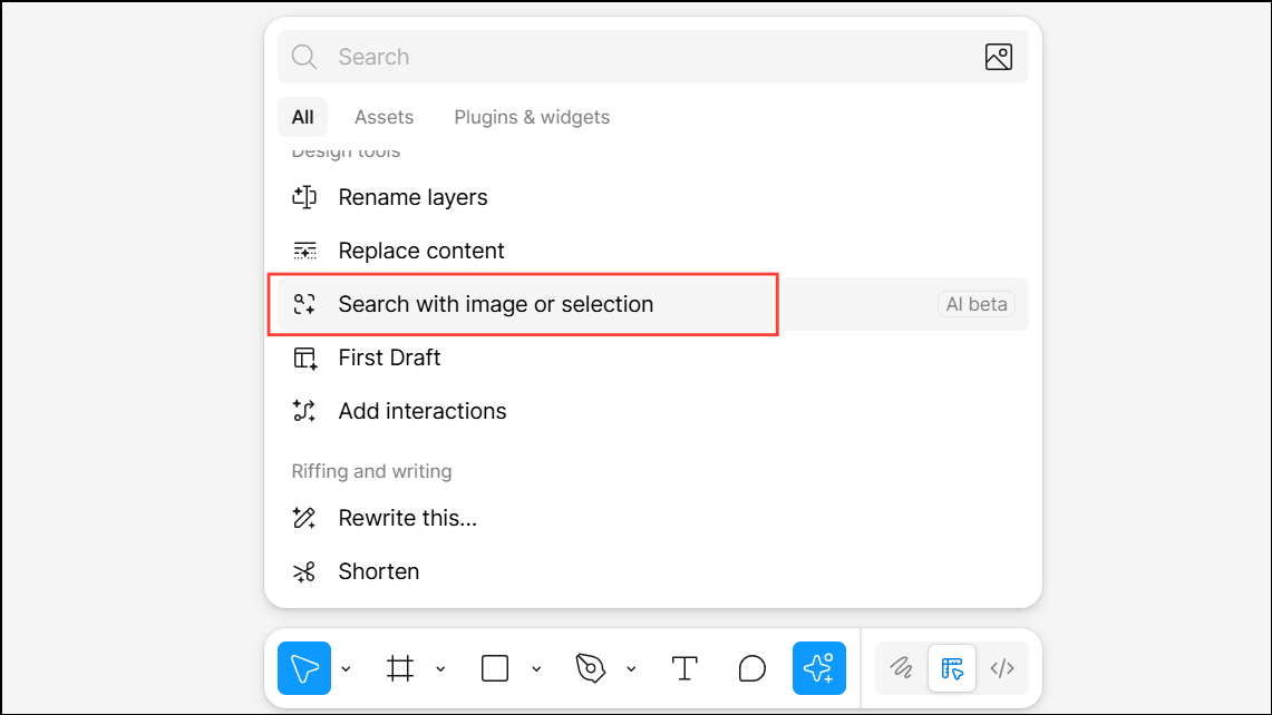 Step 1: Open your Figma file and navigate to the toolbar at the top of the interface. Click on the Actions button to access Figma’s AI-driven tools.