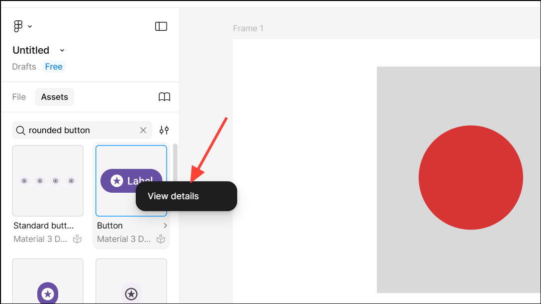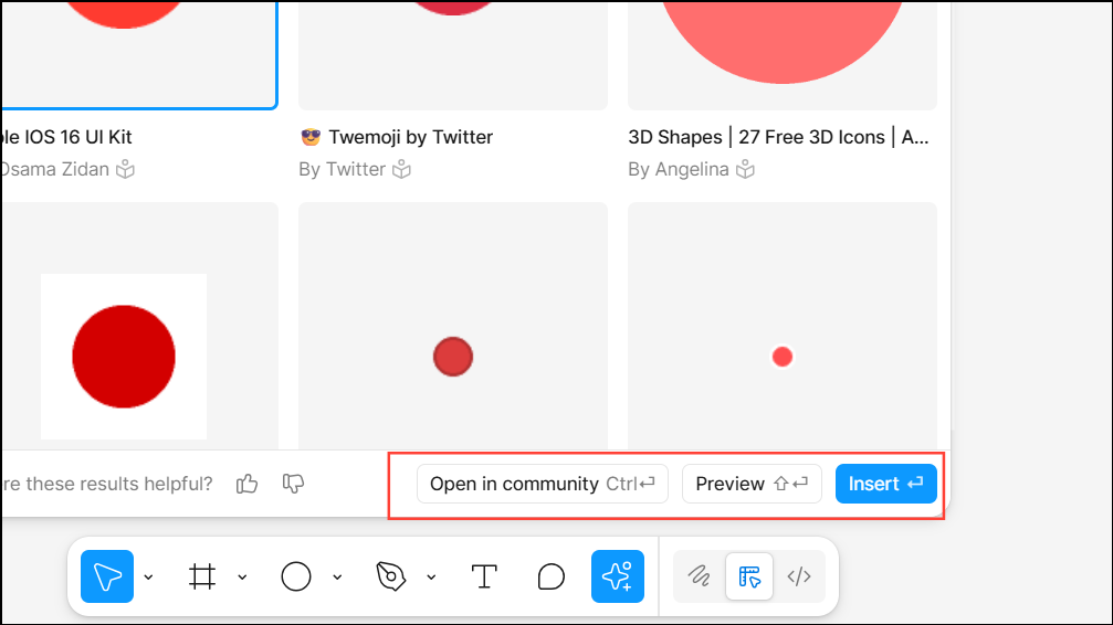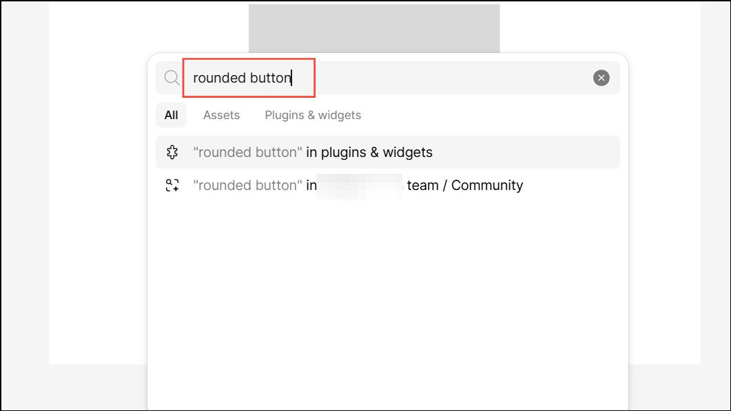 Step 1: From the Figma toolbar, click Actions and type keywords or a descriptive phrase in the search bar. For example, use terms like rounded button or dark mode header.