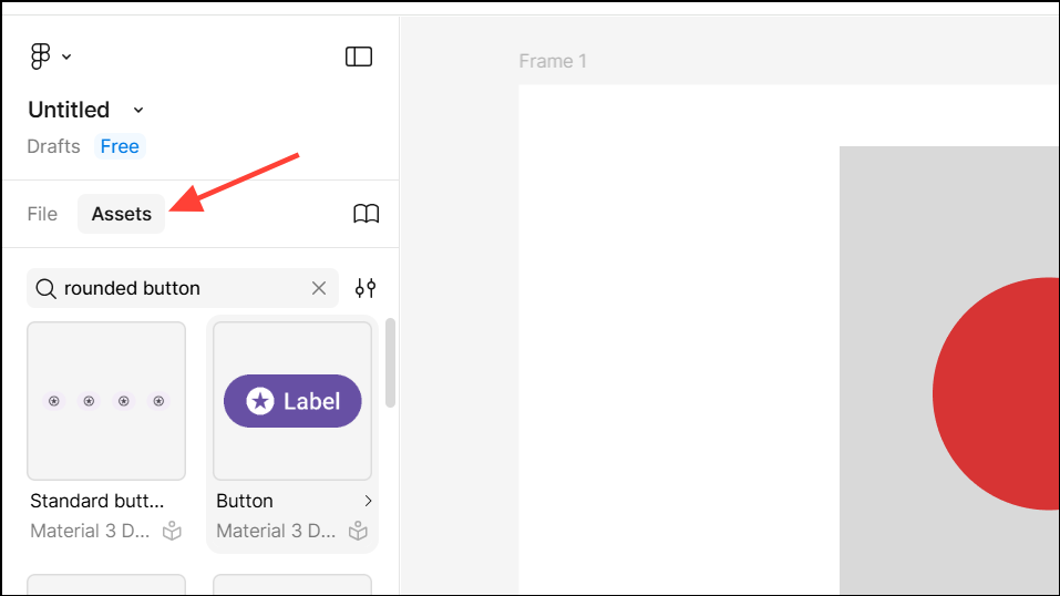 - Figma: Shows assets from files you have access to, including your team’s design system libraries.