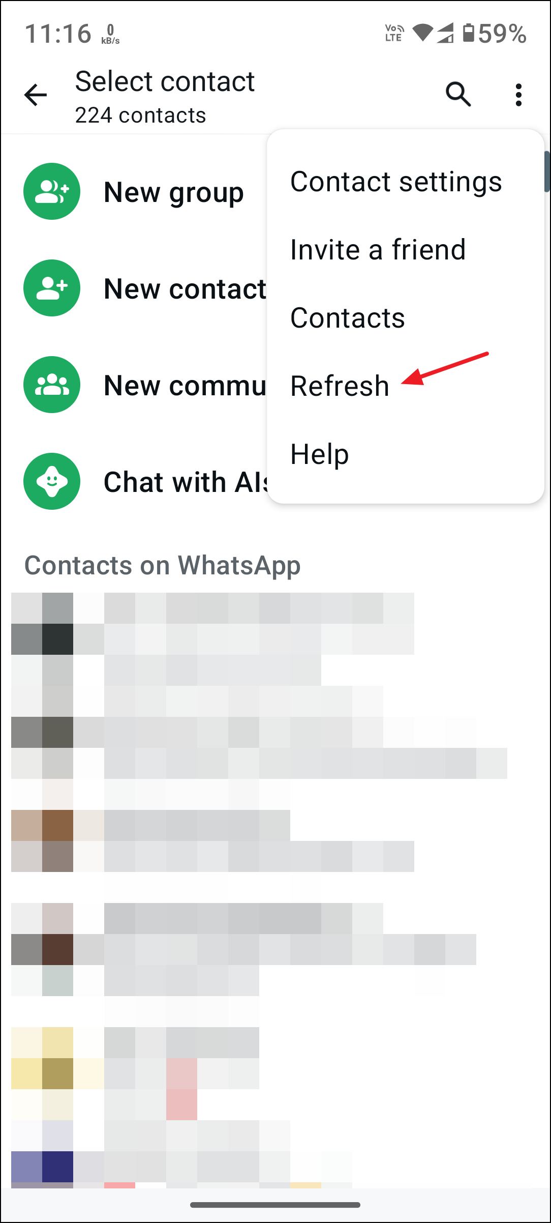 Step 2: Open WhatsApp and refresh your contact list. On most devices, this happens automatically, but you can manually refresh if you don’t immediately see the new contact.