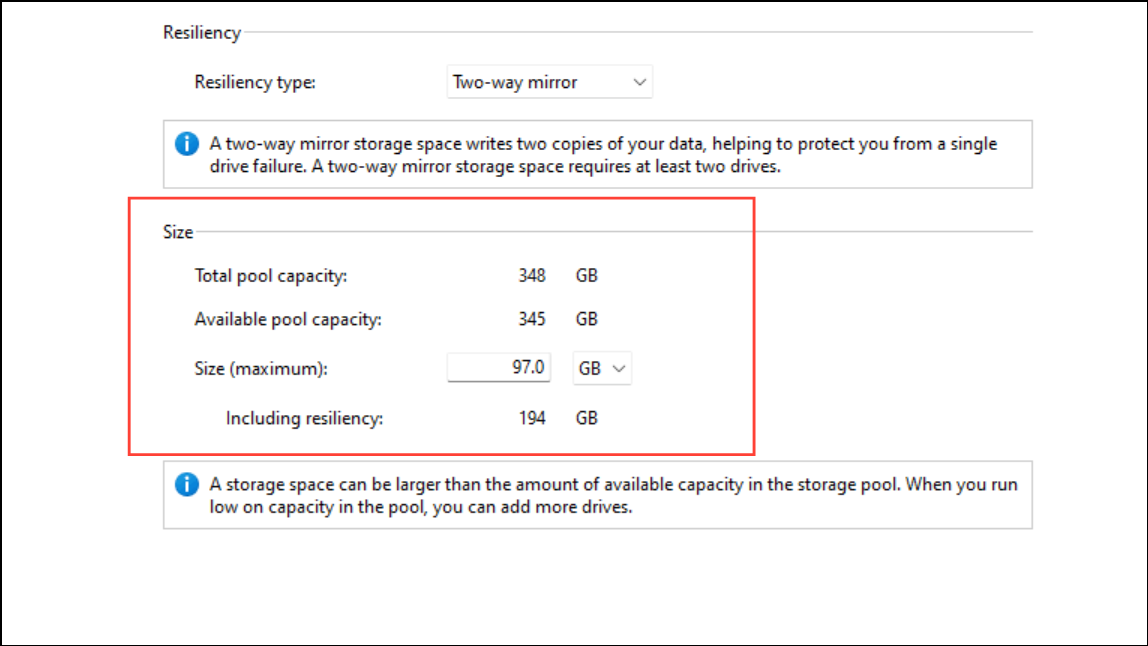 Keep in mind that while Storage Spaces improves fault tolerance, it is not a substitute for regular backups. It defends against hardware failures but does not protect against accidental deletion, corruption, or malware. Always maintain separate backups for critical data.