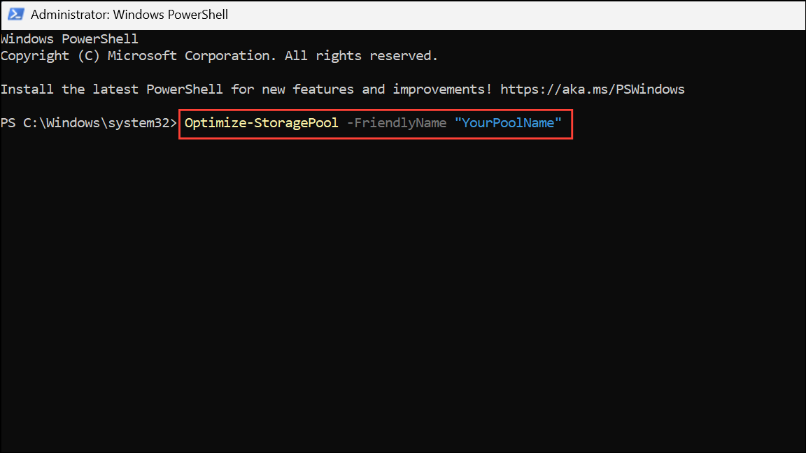 Optimize-StoragePool -FriendlyName "YourPoolName"