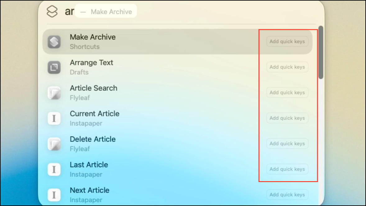 Step 2: To streamline frequent tasks, use the “Add quick keys” button next to suggested actions. This allows you to assign short character strings to your favorite actions, speeding up access in the future. For example, setting a quick key for “Create Note” lets you launch a new note with just a few keystrokes.
