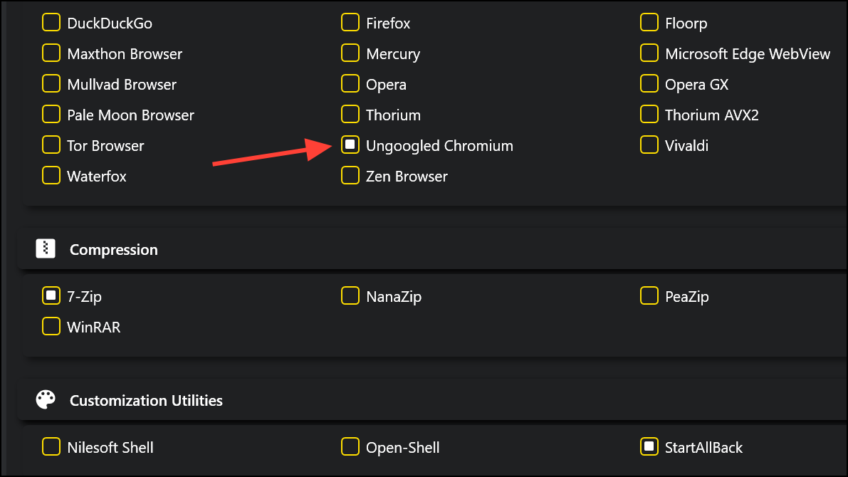 This approach is similar to tools like Ninite but with more integration into system setup and configuration. You can also save your selection as a configuration file, making it easy to replicate your preferred setup on new machines or after a fresh install.