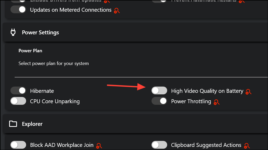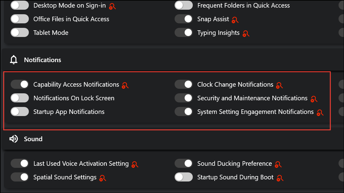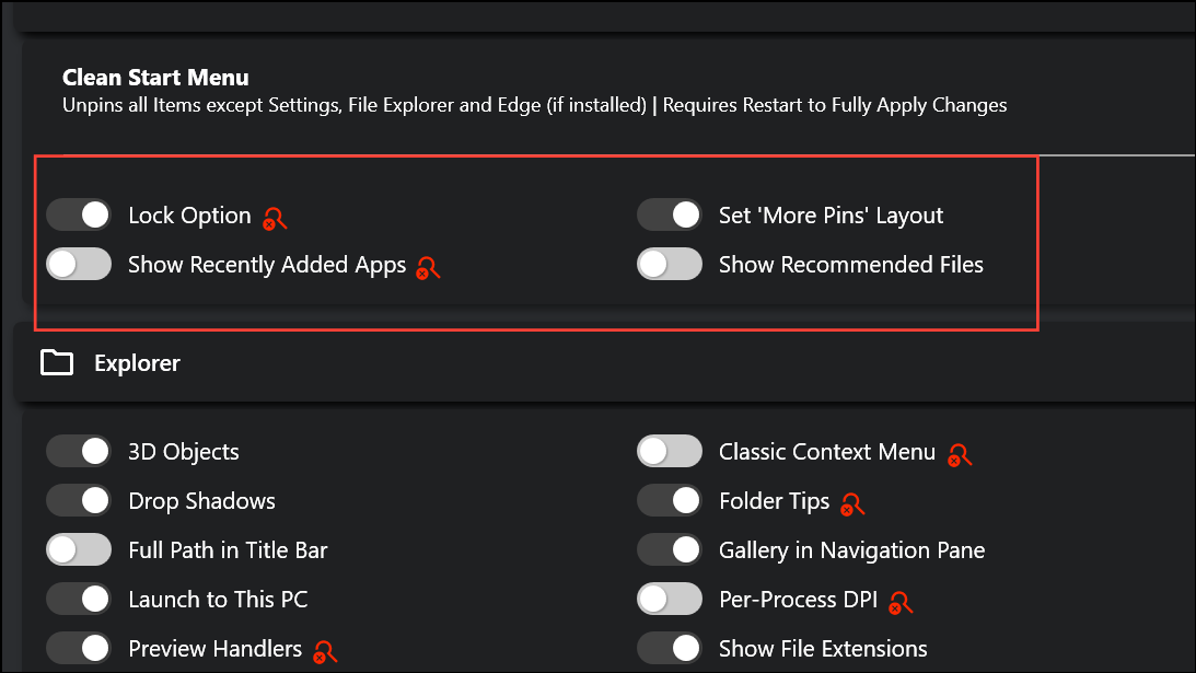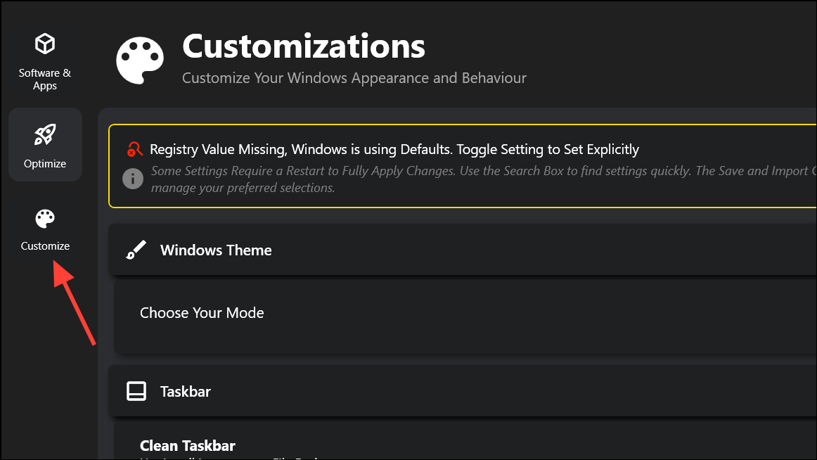 Each setting has a status indicator to warn if a registry value is missing or a restart is needed to apply changes. This immediate feedback helps avoid misconfigurations and ensures your adjustments take effect as intended.