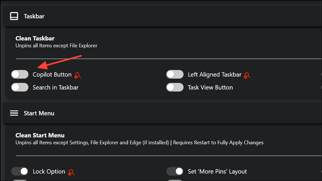 Step 2: In the Taskbar section, unpin unnecessary icons such as Copilot, Meet Now, Task View, and Windows Chat. You can also align the taskbar to the left and control which system tray icons are visible.