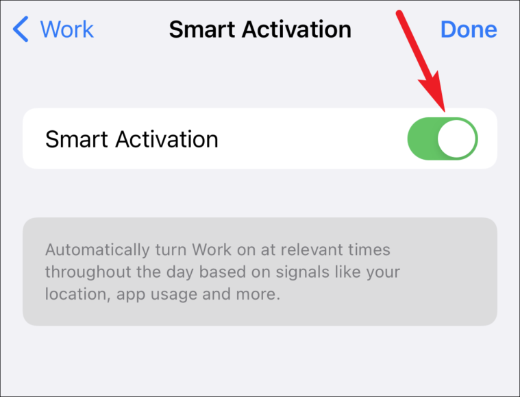 You can also turn on Smart Activation for Focus so it’ll be turned on automatically based on certain signals such as location, time, or when you open an app.