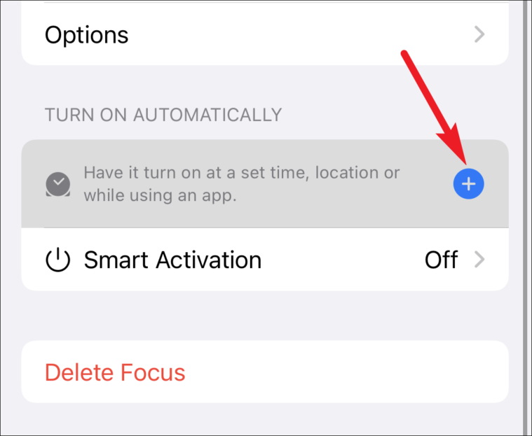 Go to Focus from settings and open the focus you want to set smart activation for.