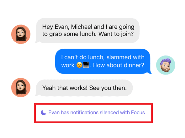 iOS 15 also introduces a new feature that lets others know that your notifications are on mute. Whether you’re using DND or Focus, when someone sends you an iMessage, they’ll get an alert on their screens that’ll let them know about your status.