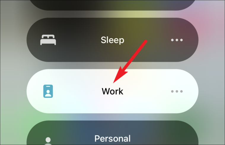 Then, select the option you want to set up. Here, let’s set up the work Focus mode. Tap the option for ‘Work’.