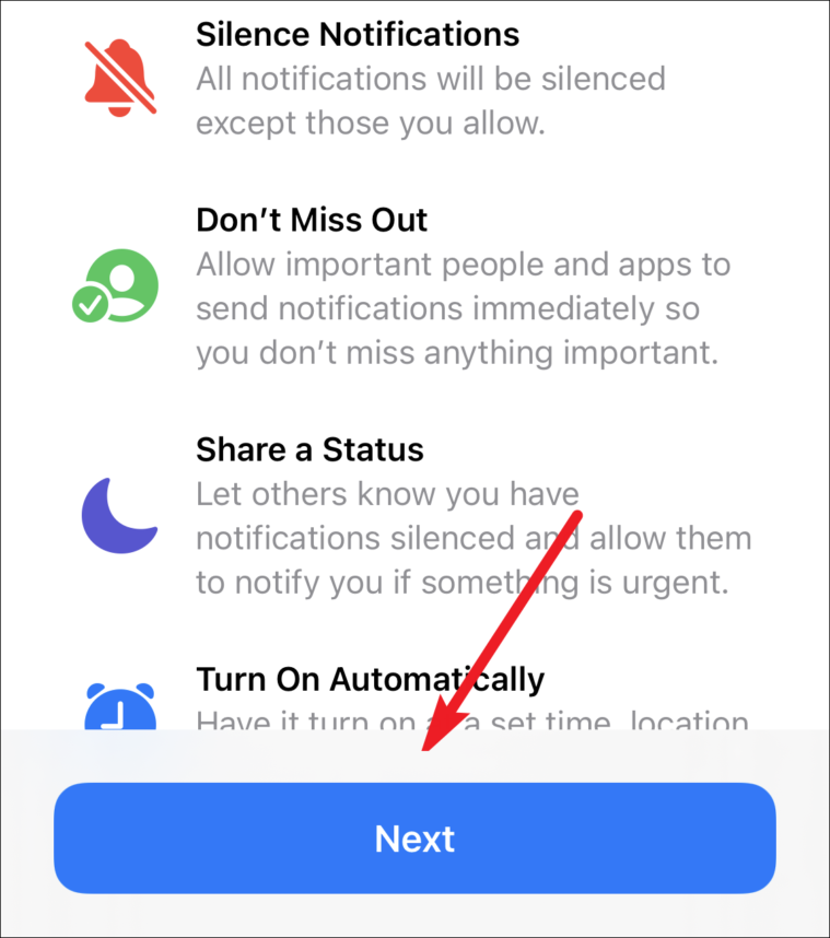 An overview of features available in Focus will appear. Tap ‘Next’ to move forward.