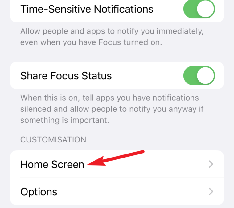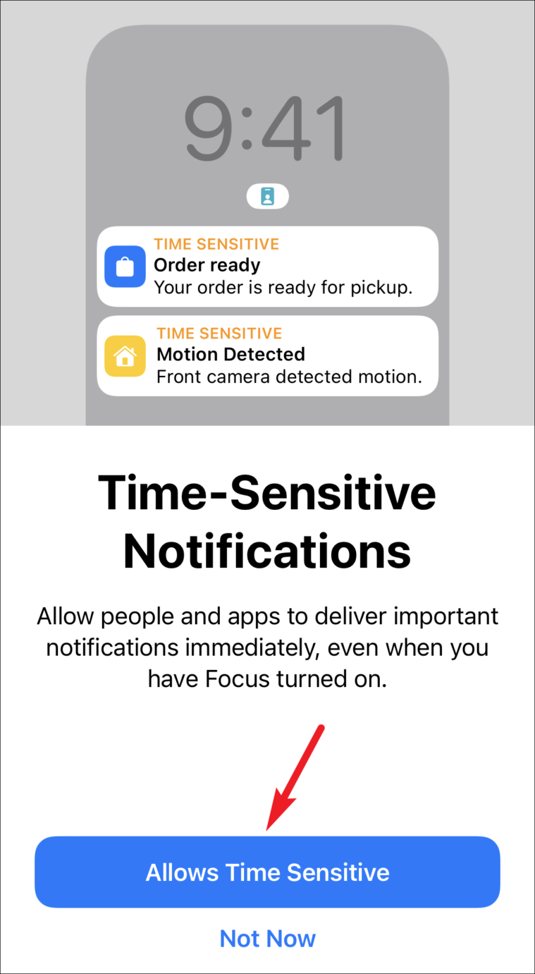 Next, you can choose to allow time-sensitive notifications. Notifications from delivery apps or Home fall under this category. Tap ‘Allows Time Sensitive’ to turn them on.